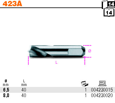 FREZ SPECJALNY DO ZGRZEWÓW PUNKTOWYCH, MODEL 423A, 6,5X40MM