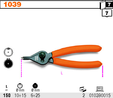 SZCZYPCE DO PIERŚCIENI WEWNĘTRZNYCH I ZEWNĘTRZNYCH SEGERA, MODEL 1039