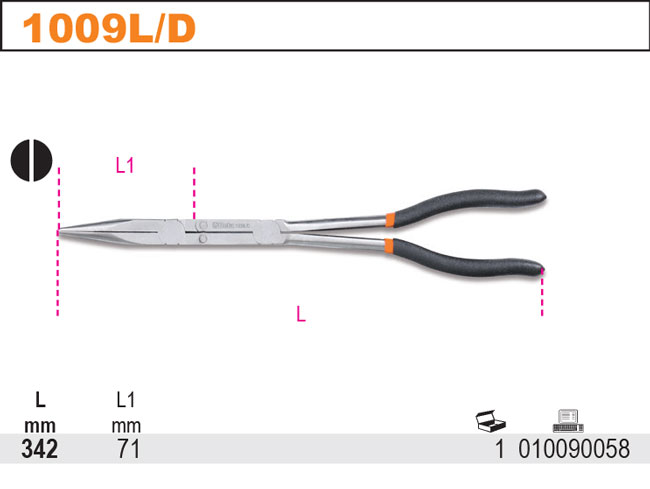 SZCZYPCE PÓŁOKRĄGŁE DŁUGIE Z PODWÓJNYM PRZEGUBEM PROSTE, RAMIONA POKRYTE PODWÓJNĄ WARSTWĄ PCW, MODEL 1009L/D, 342MM