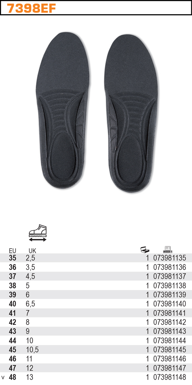 WKŁADKI DO BUTÓW Z PIANKI P/U, ANATOMICZNIE WYPROFILOWANE, PARA, MODEL 7398EF